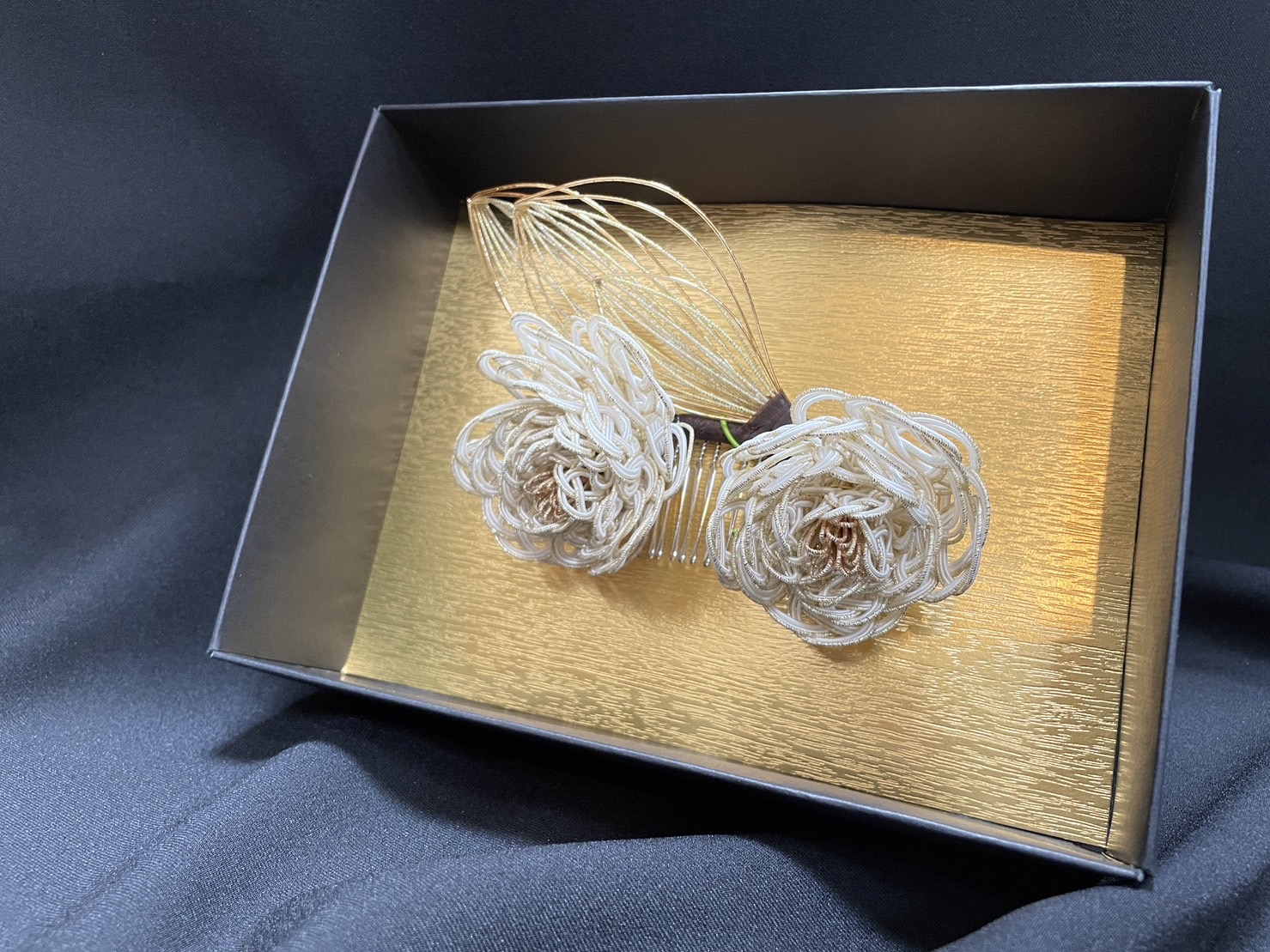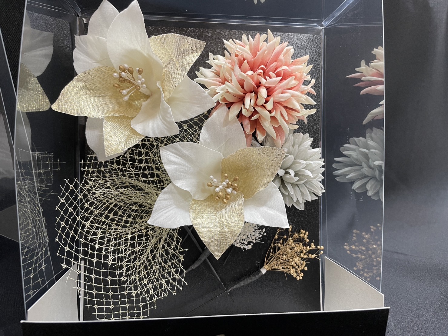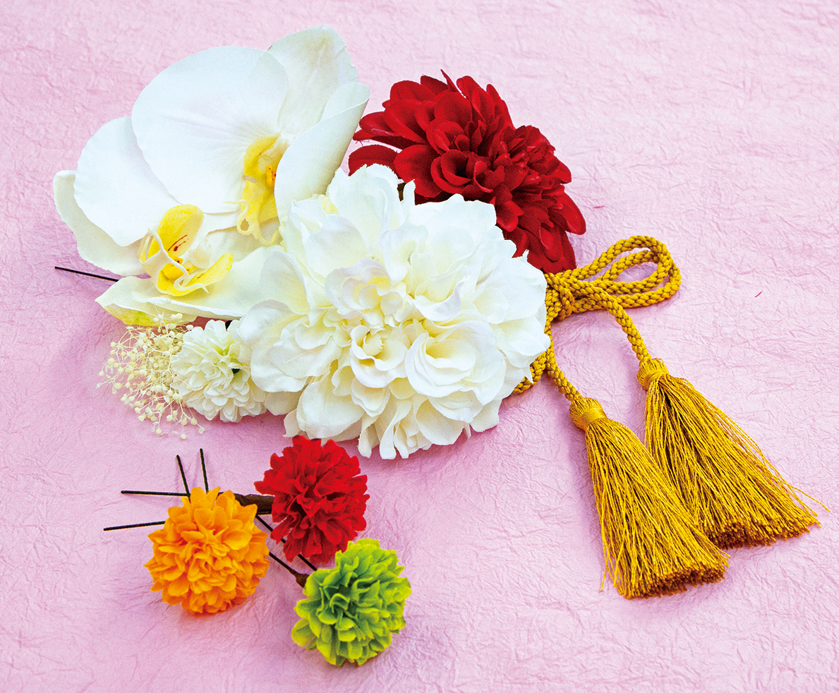 前撮り・成人式当日だけでなく、学生さんなら卒業式、同窓会やご結婚式のお呼ばれのドレスに合わせる髪飾りとしても長くお使いいただけますね。