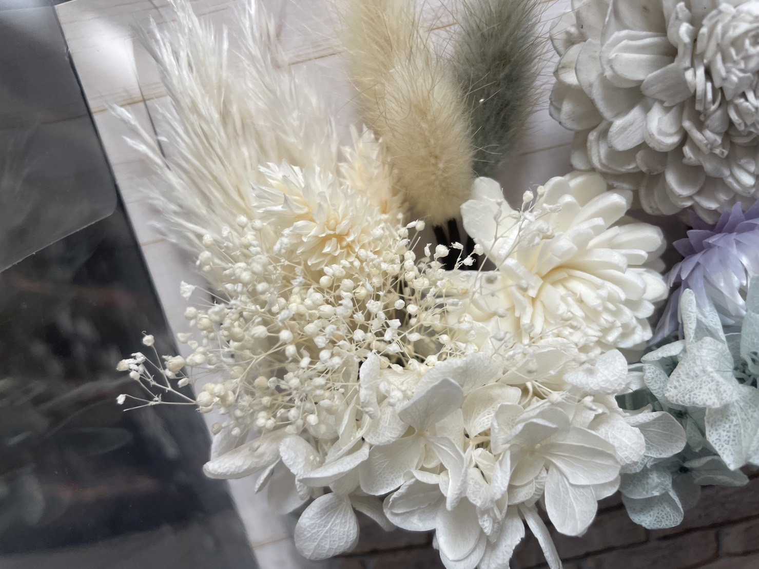 造花のドライフラワー風も可愛いですが、やはり本物のドライフラワーの質感にこだわるお嬢様も多いようです。