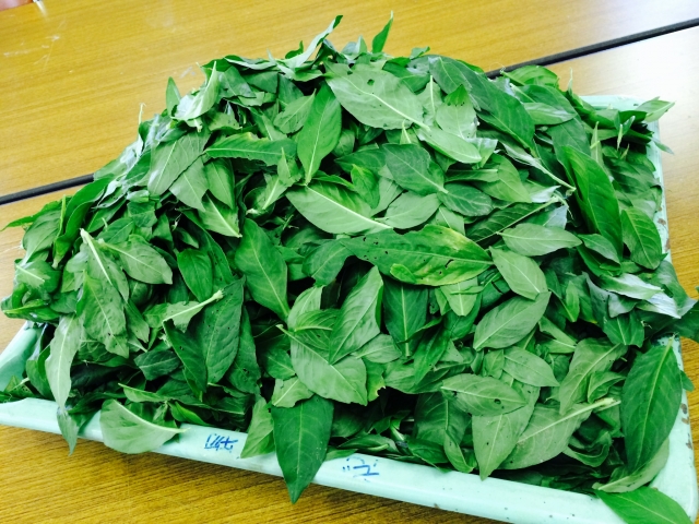 葉だけを選別し終えたら敷物の上に藍を並べ、約二日間乾燥させます。