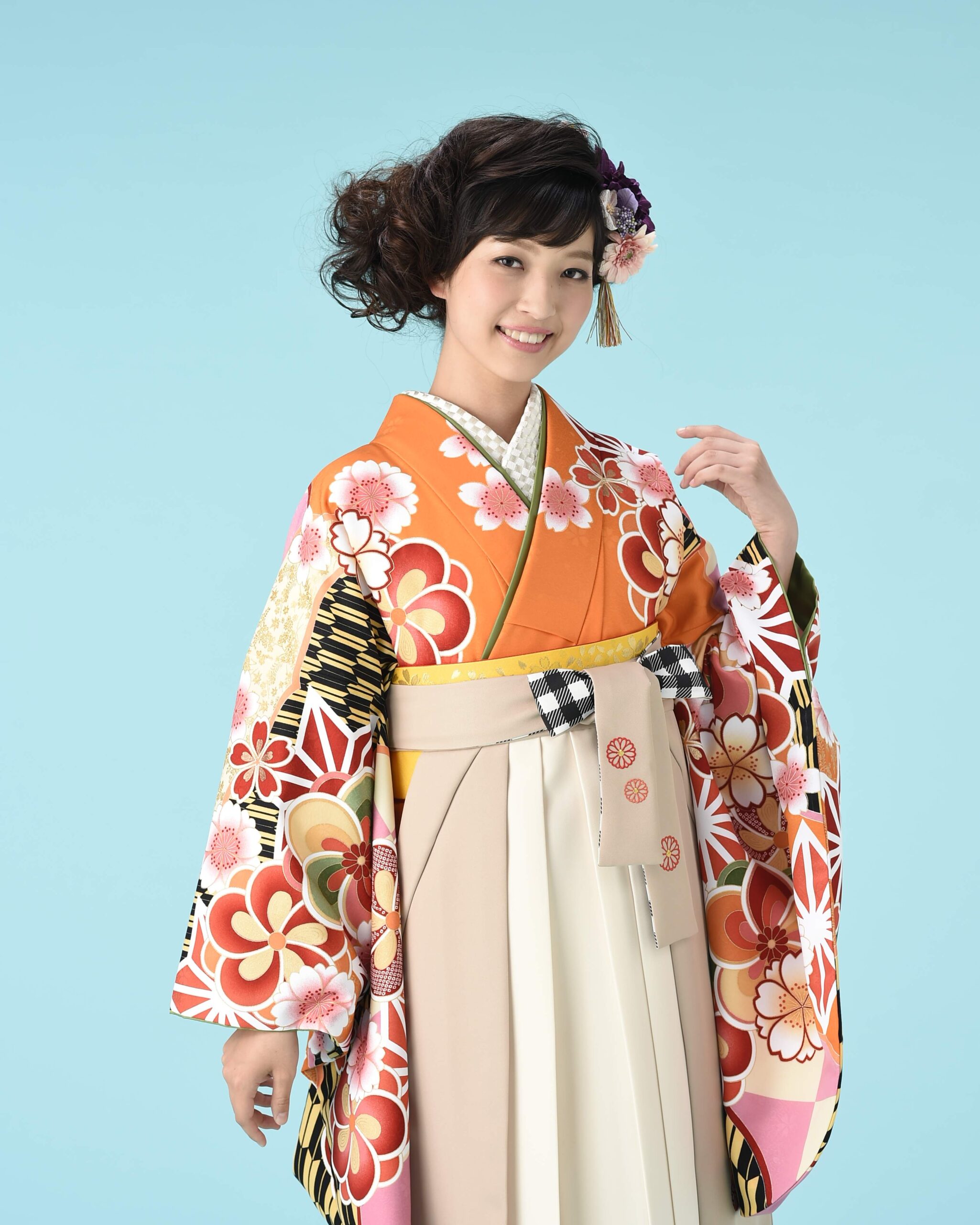 ①着物…振袖、もしくは二尺袖(にしゃくそで)という普通の着物より少し袖の長い着物に袴を合わせていきます。