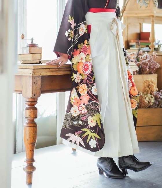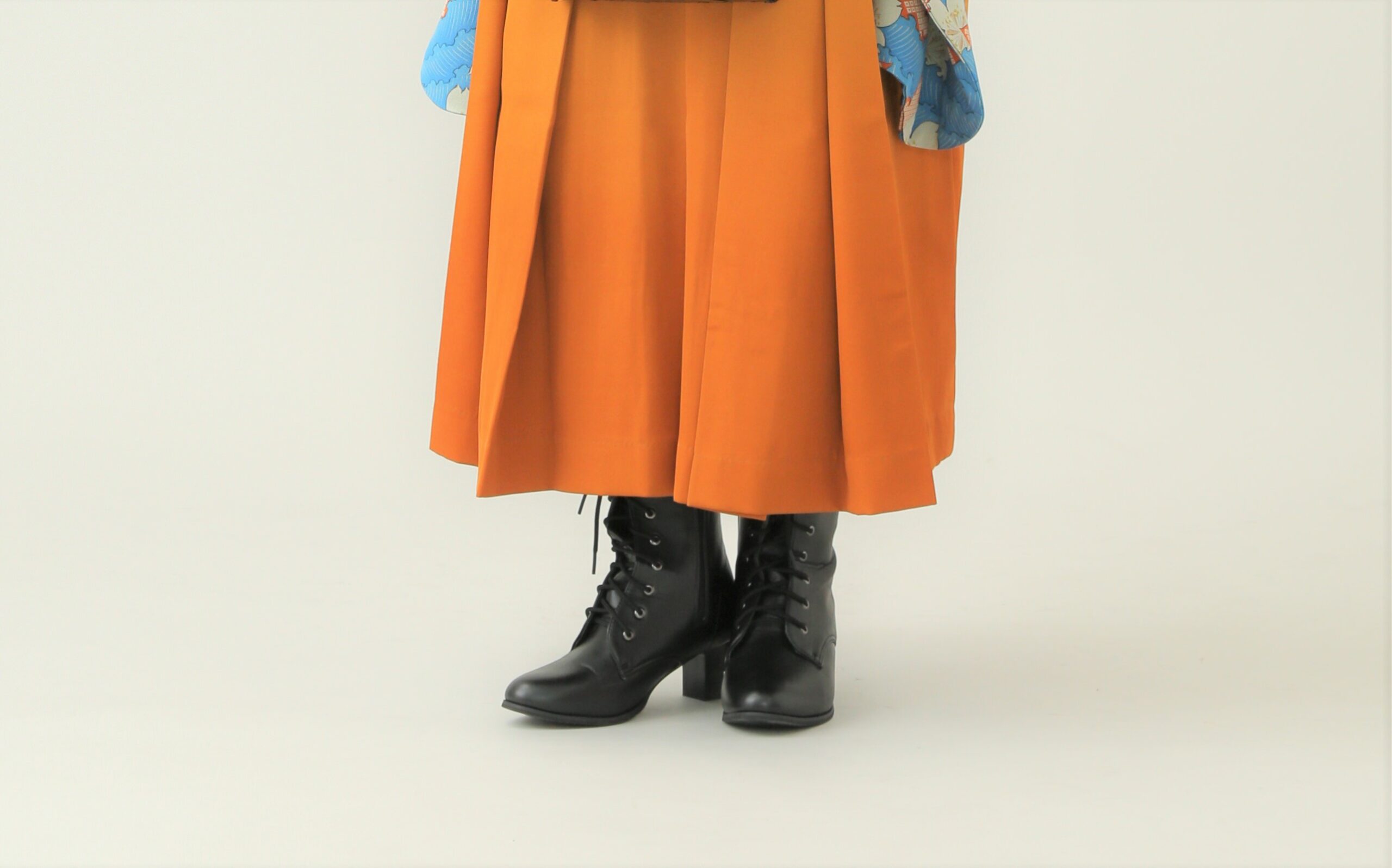 ちなみにブーツを履く場合は足首が少し見えるくらいの袴丈がお勧めです。草履と同じ丈にすると袴がせっかくのブーツをすっぽりと覆い隠してしまいますので長すぎないように袴のサイズを選んだほうが良いでしょう。