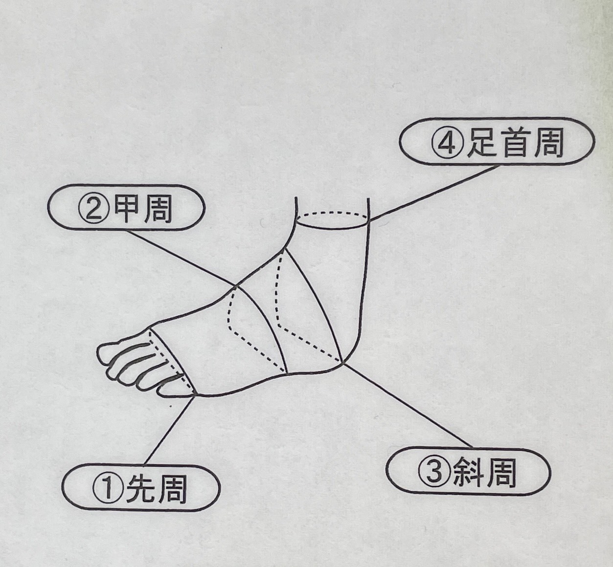 実は、足袋のサイズには足底の長さだけではなく、足の[先周][甲周][斜周][足首周]などのサイズから、ゆったり~ほっそりまで数タイプあるんです。
