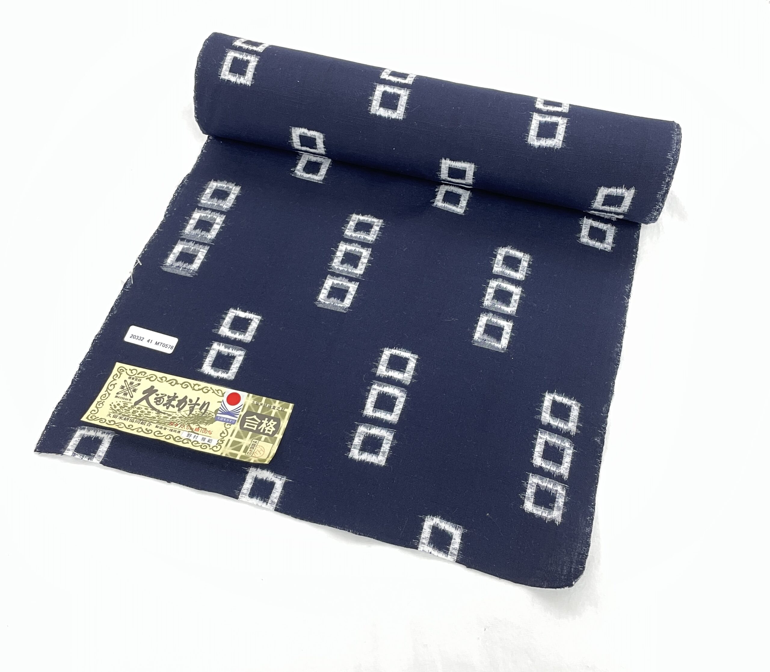 日本三大絣として有名な木綿着物のひとつで、藍色の生地に真っ白な柄模様が特徴です。