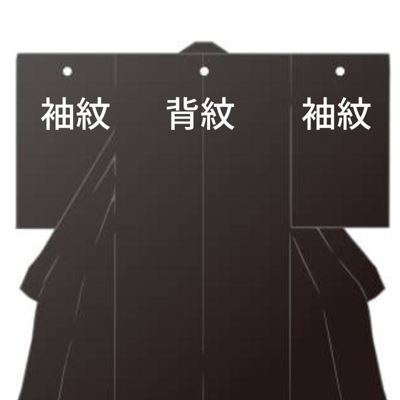 袖紋・・・袖山から2寸(約7.5cm)下がった袖幅の中央にある紋。両後ろ袖に入れる