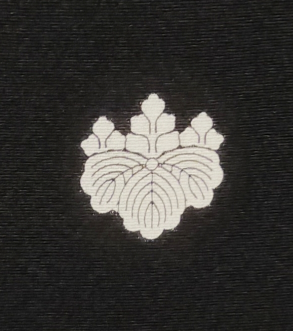 五つ紋…背紋、袖紋、抱き紋すべてに染め抜き日向紋を入れる。黒留袖と黒喪服には必須です。色留袖に入れることもあります。
