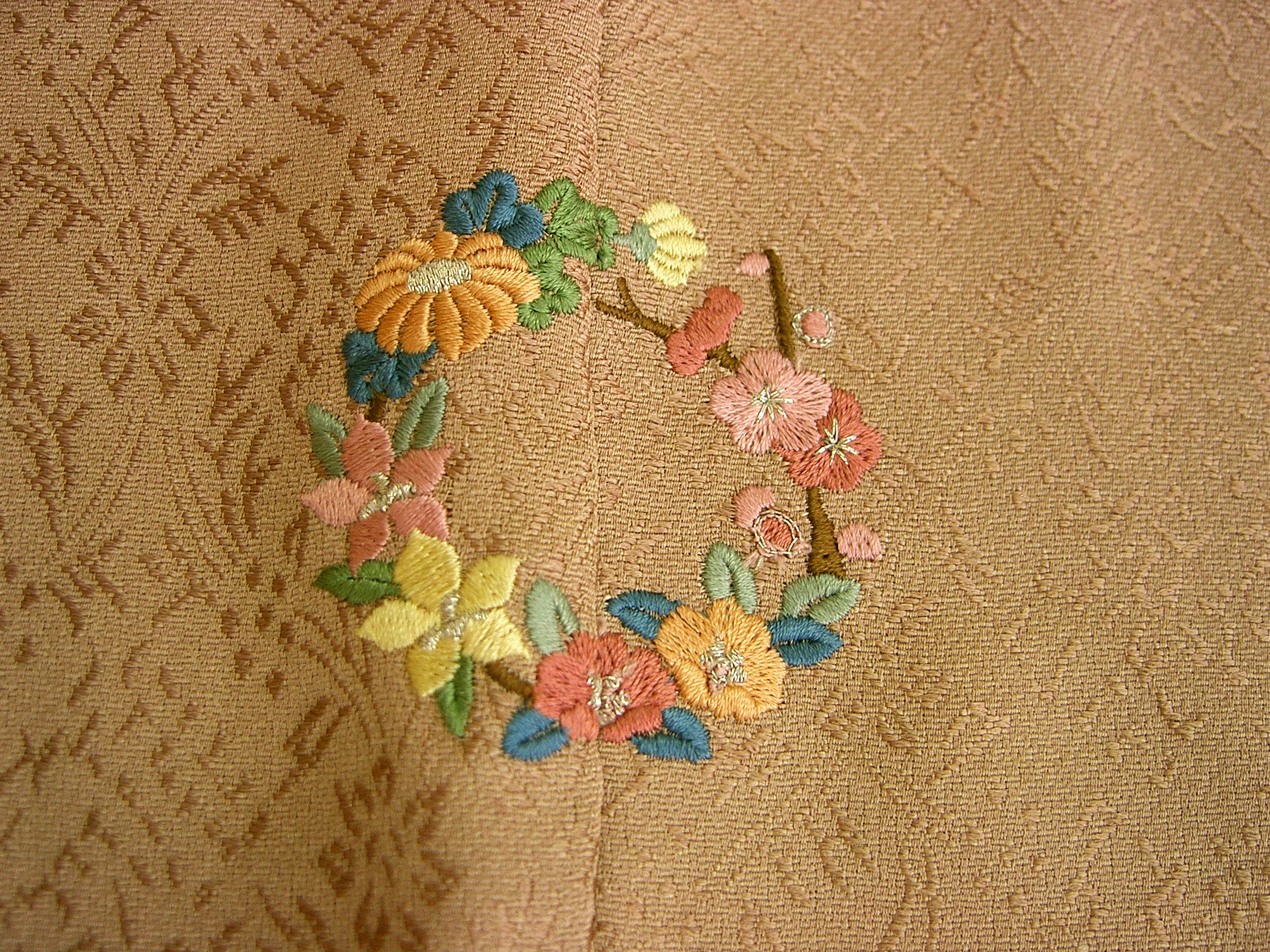 紋を刺繍で表現したもの。染め抜き、刷り込みより格下で一つ紋に用います。