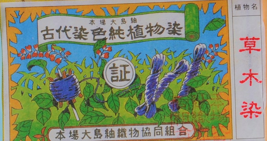 紬全体が正藍染めされている正藍大島紬には、古代染色純植物染の証紙がついています。