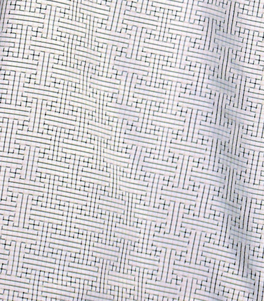 大島紬の図案は組織と密度に合わせた方眼紙に小さな「十字」をいくつも描いて作り、曲線も全て絣の点に置き換えられます。