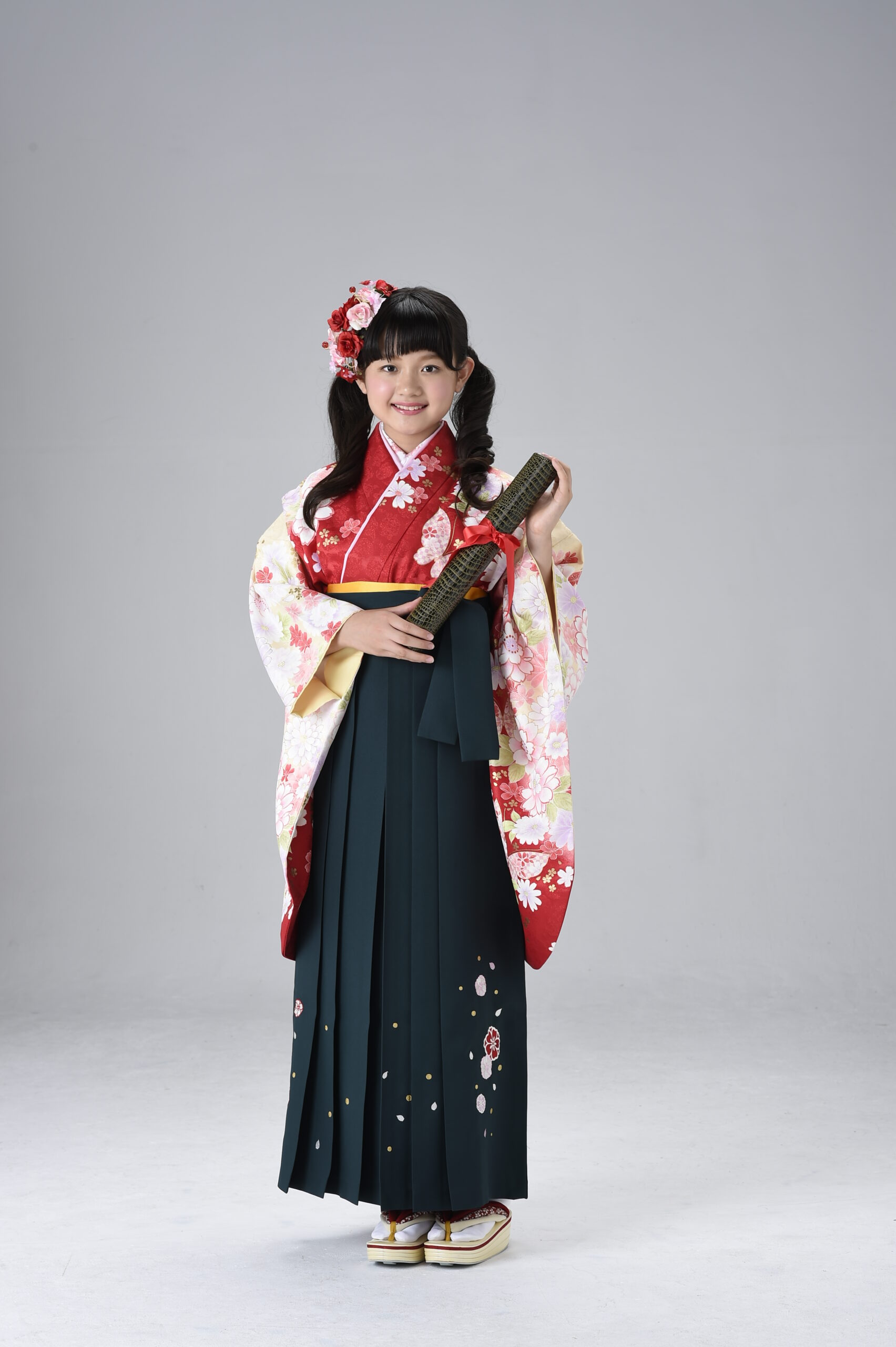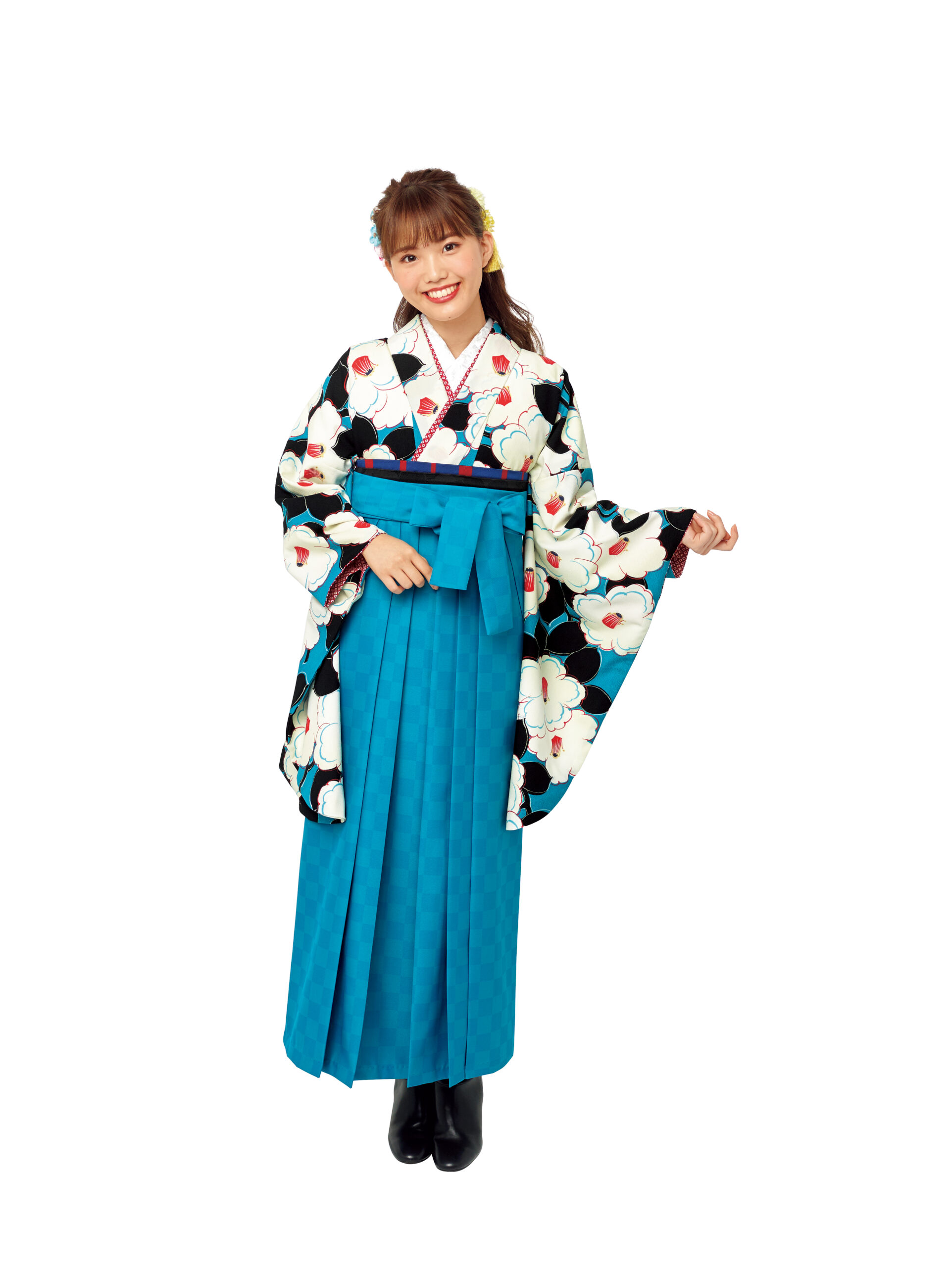 二尺袖よりも袖丈が更に短い一尺三寸袖の着物も、袴を合わせて卒業式スタイルで着用できます。